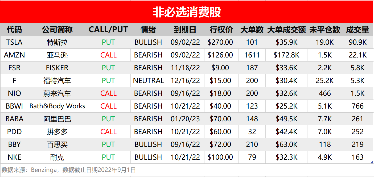 周四(9月1日),非必选消费、信息技术和工业股相关个股出现较多活跃单,按照当日成交量排行,榜单TOP 10分别如下: