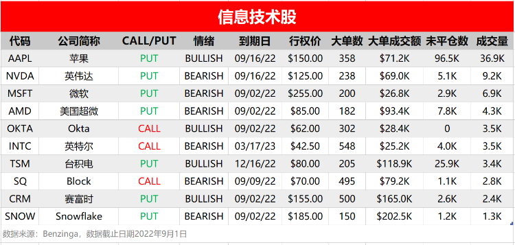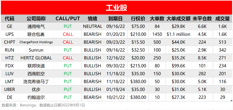 重点动态:传统价值标的联合包裹现百万美元级别看涨期权大单,该期权于2023年1月20日到期,行权价210美元,该大单成交1450张,总成本110万美元。该期权今日共成交约1600张,成交量显著放大。