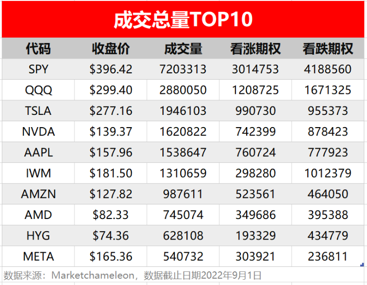 期权市场方面,交易活跃度持续升温,周四期权成交总量为39,468,323张,高于前一个交易日,并高于90日平均成交量 36,039,310。其中,看跌期权合约占比50%,前值51%,看涨期权合约占比50%。