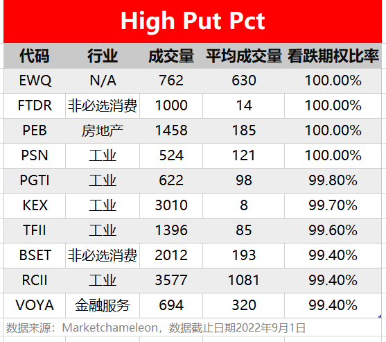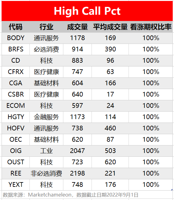 注:High Call Pct/High Put Pct是指相关期权标的当前看涨/看跌比例大小,该比值越高意味着该期权标的看涨/看跌的合约占比越高。
