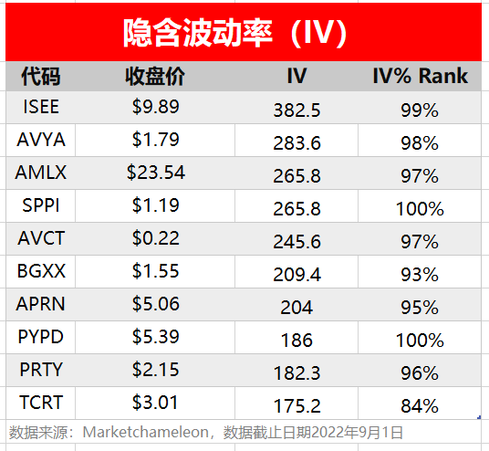 注:隐含波动率(IV)指标是期权交易最常用的指标之一,通常情况下该指标越高,意味着期权交易的机会越大,IV(%)百分比表示当前隐含波动率在过去一年中最高和最低区间内的相对位置,有助于了解指定期权波动率的纵向趋势,该比率越高说明近期隐含波动率处于上升趋势。