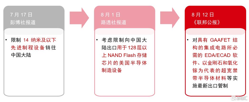 8月12日,美国商务部工业和安全局在《联邦公报》中披露了一项新增的出口限制临时最终规则,该禁令对具有GAAFET结构的集成电路所必需的EDA/ECAD软件、以金刚石和氧化镓为代表的超宽禁带半导体材料、包括压力增益燃烧(PGC)在内的四项技术实施了新的出口管制。美国对半导体产业链限制加码。