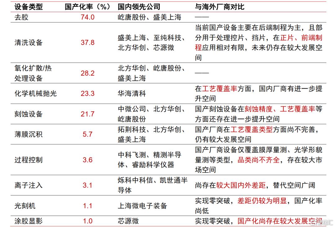 (2)设备打入供应链,推荐国产替代及细分龙头。国内的厂商仍在快速发展阶段,未来替代空间仍大,建议关注技术领先的细分龙头。