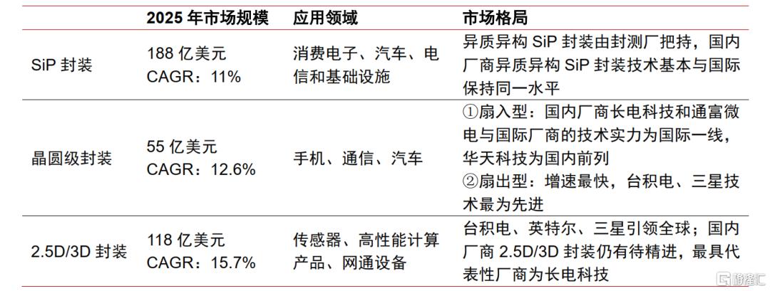 国内先进封装行业发展较成熟,市场需求及国产替代空间巨大,技术涵盖及性能表现是行业的核心逻辑。建议精选技术领先、业绩增长高确定性个股,综合梳理两条投资主线: