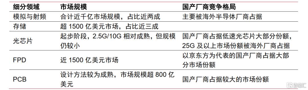 表1:全定制设计覆盖领域市场规模及国产厂商竞争格局
