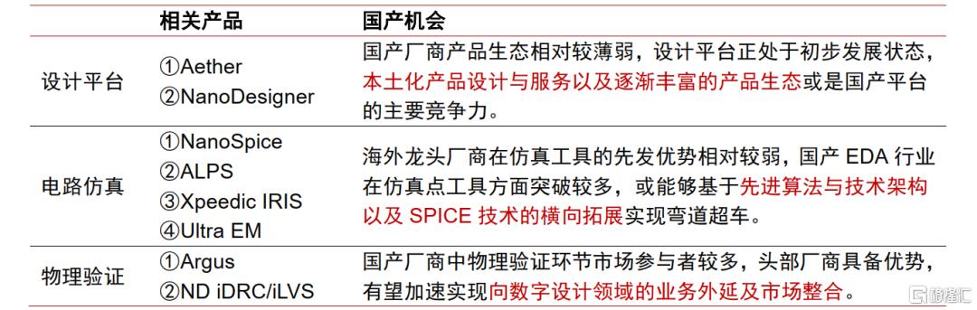 重点看好具备全定制领域全流程能力并具备拓展数字工具能力、关键品类竞争力突出、覆盖多领域的国产EDA龙头厂商;同时建议关注单品类竞争力突出的点工具EDA企业。