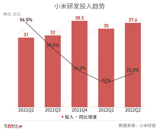 收入和利润双双大幅下降,原因在于小米的现金牛手机业务疲软,而对汽车业务的投入还在进一步侵蚀利润。Q2,小米在研发人员环比减少超300人的情况下,研发费用同比增长22.8%至37.6亿元,其中造车研发投入6.11亿元,占比超过16%。