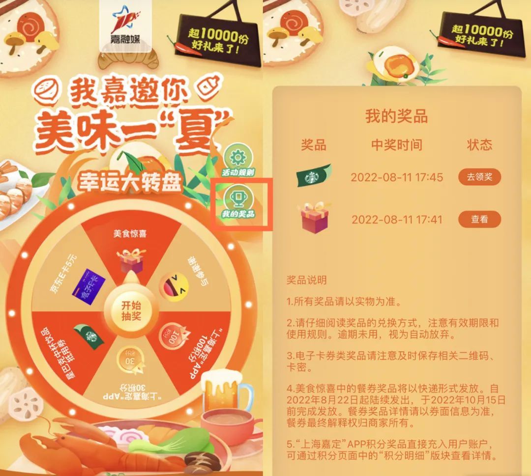 我“嘉”邀你 美味一“夏”积分抽奖活动!