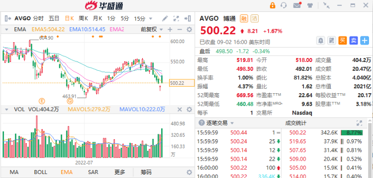 第三只成长型股票是半导体解决方案提供商博通,尽管供应链限制和近期订单疲软正在给芯片行业造成破坏,但博通拥有明显优势帮它度过这场风暴。