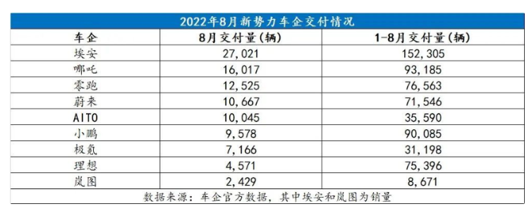 实际上,9月第一天,几家头部新势力造车纷纷公布了8月的交付数据,除理想、小鹏碍于新老车型切换等原因出现环比下滑,其它家的表现都足以称得上一片大好,纷纷创下了历史新高。