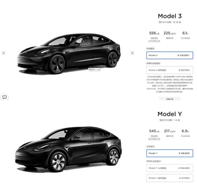设想一下,以中国市场为例,如果明年前者的后轮驱动版车型调整至23万元左右,后者的后轮驱动版车型调整至28万元左右,并且换装了网传宁德时代所提供的最新M3P电池,容量进一步增大,续航进一步变长。