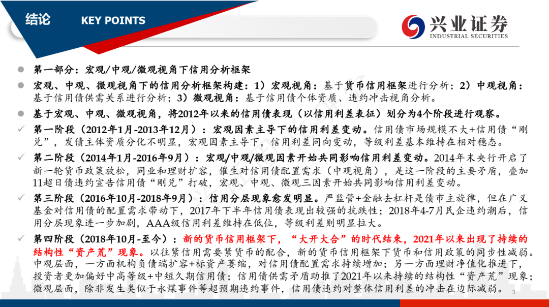 因此,如何动态更新框架,以适应当下的投研环境至关重要。兴证固收团队立足于过去10多年的研究,在各个领域形成了详尽的框架报告,与大而全的分析框架不同,我们侧重于每个领域主要矛盾的变迁及其对市场的影响。