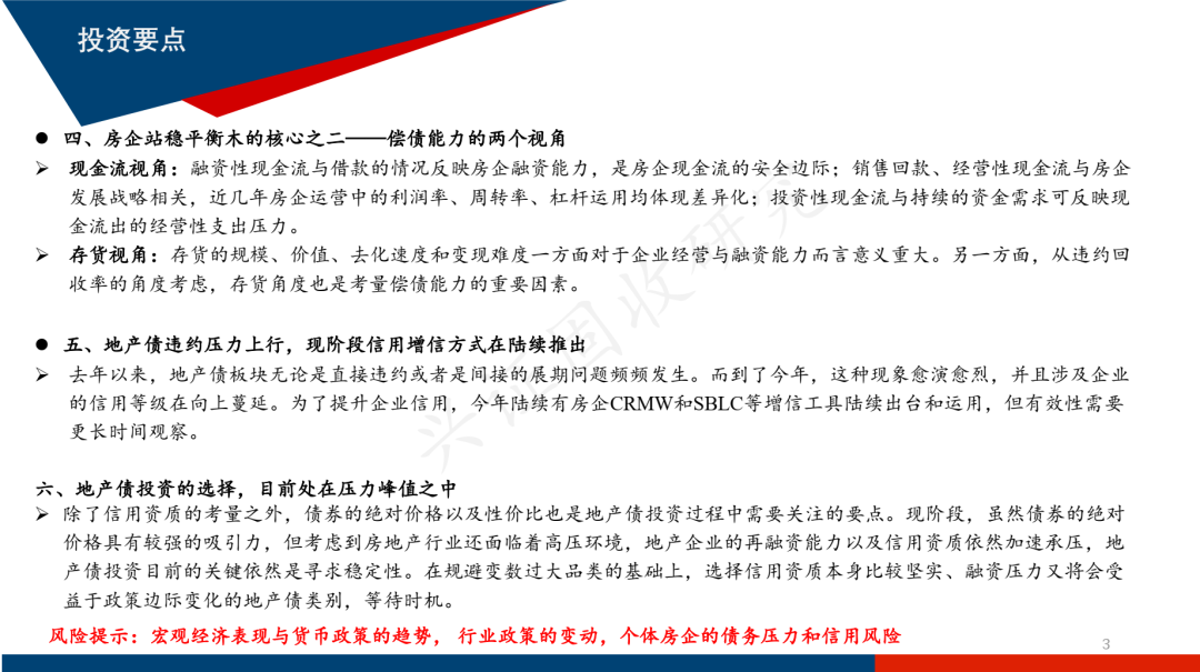 基于此,现阶段仍建议筹谋与观察,如何去观察行业的周期变动,关注个体于短期面临的核心问题,看见市场多层次的边际变化也变得格外重要。因此,我们兴证固收团队在本期推送中特推荐我们近期的地产行业研究框架和地产债投资指南,供各位投资者参考。