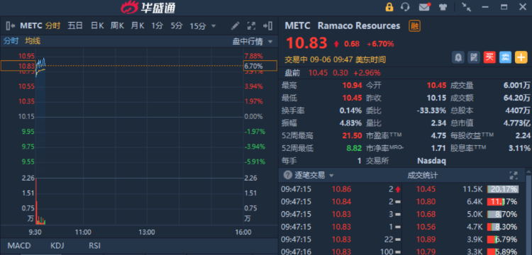 煤炭股逆市上涨,截至发稿,METC $METC 涨近7%,报10.83美元。ARCH $ARCH 涨超5%,HCC $HCC 、CCJ $CCJ 涨超4%,Hallador能源 $HNRG 、中国天然资源 $CHNR 涨超2%。