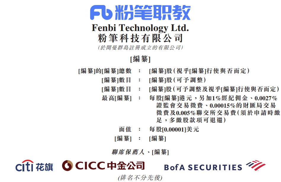 据港交所 披露,职业教育平台 粉笔科技 递表 港交所 主板申请上市, 中金公司 、 花旗 、美银证券为联席保荐人。