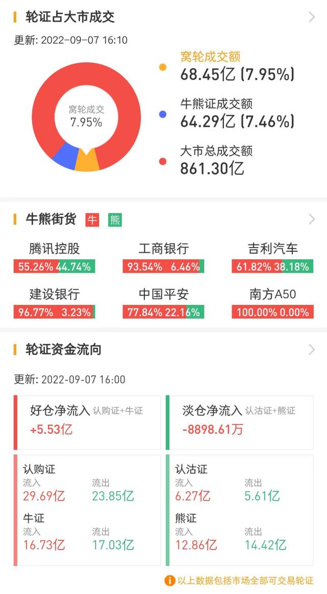 其中,窝轮总成交额为68.45亿港元,牛熊证总成交额为64.29港元。