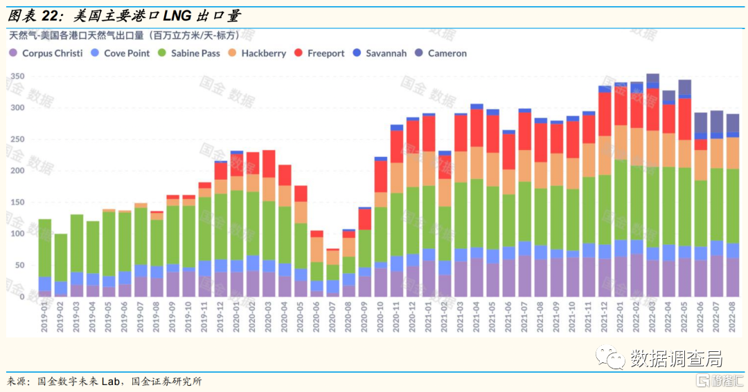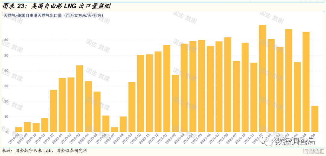 我们通过卫星大数据模型回溯过去7年的冬季情景进行测算发现:欧洲天然气库存在悲观情景下预计2023年2月就将消耗完毕,即使按照乐观情景,欧洲天然气库存在2023年4月预计持平历史最低值,而美国自由港从2022年6月8日起对欧洲断供后不断推迟恢复供应的时间进一步加剧了俄罗斯北溪1号对欧洲断供的恶劣局面,欧洲能否规避冬季库存耗尽和美国自由港何时恢复对欧洲供气关联紧密,市场对此严重缺乏认知。