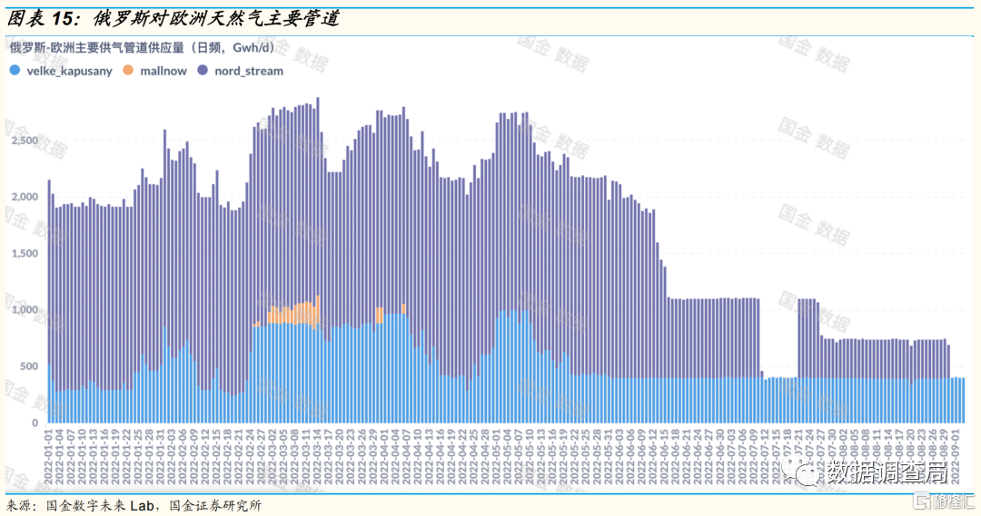 与此同时,欧美主要国家就对俄罗斯能源制裁方面持续发力,近期俄气宣布北溪一号在检查后无限期关闭,伴随地缘政治摩擦持续,欧洲天然气去库速度或逐步接近悲观消费情景下俄罗斯持续断供假设,并不能排除欧洲天然气冬季用尽的风险。