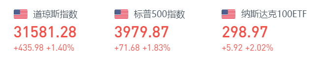 截至9月7日周三收盘,道指涨435.98点,涨幅为1.40%,报31581.28点;纳指涨246.99点,涨幅为2.14%,报11791.90点;标普500指数涨71.68点,涨幅为1.83%,报3979.87点。