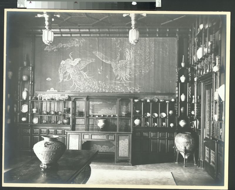 “孔雀屋”重新开放时,策展人参考了房间在1908年在底特律的档案照片,再现当时的陶瓷展示场景。观众从中看到的不仅是弗利尔收藏兴趣和品味的精彩缩影——来自叙利亚、日本、中国、韩国的陶瓷,也可以看到他利用整个空间的奇妙能力,它本身几乎就是一个装饰物。弗利尔经常把自己的陶瓷收藏按颜色分组排列,利用这些单独的物体来描绘空间,组合在一起又形成这一辉煌的整体。