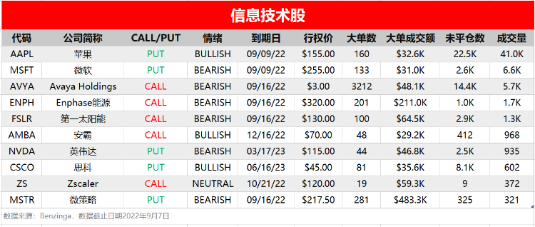 重点动态:苹果出现9月9日到期、行权价155美元的看跌期权异动大单,成交160张,总成本3.26万美元。近期苹果股价回调,接近该期权链行权价,但是该期权链每份合约价格当日下跌超50%,成交量攀升。