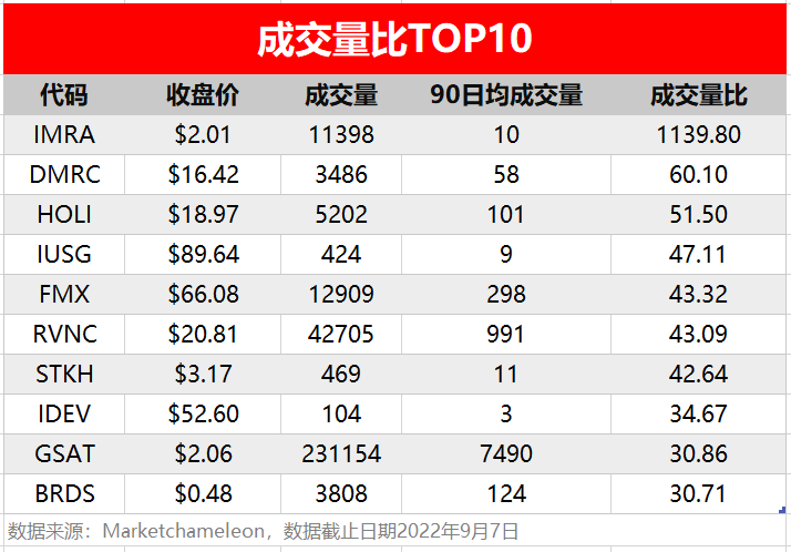 周三(9月7日),非必选消费、信息技术和医疗健康股相关个股出现较多活跃单,按照当日成交量排行,榜单TOP 10分别如下: