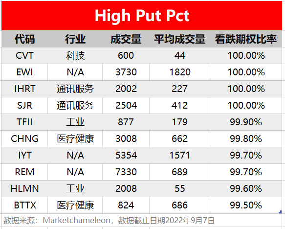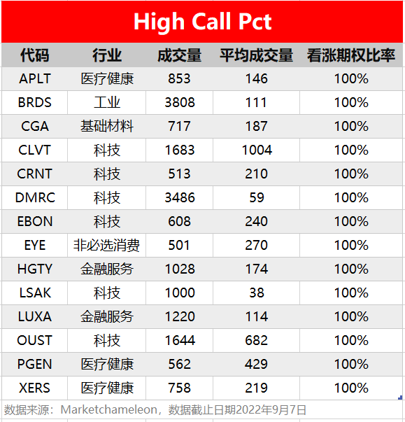 注:High Call Pct/High Put Pct是指相关期权标的当前看涨/看跌比例大小,该比值越高意味着该期权标的看涨/看跌的合约占比越高。