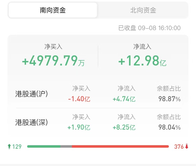 南下资金今日净买入港股0.5亿港元,其中港股通(沪)净卖出1.4亿港元,港股通(深)净买入1.9亿港元。上一交易日净买入港股8.33亿港元。
