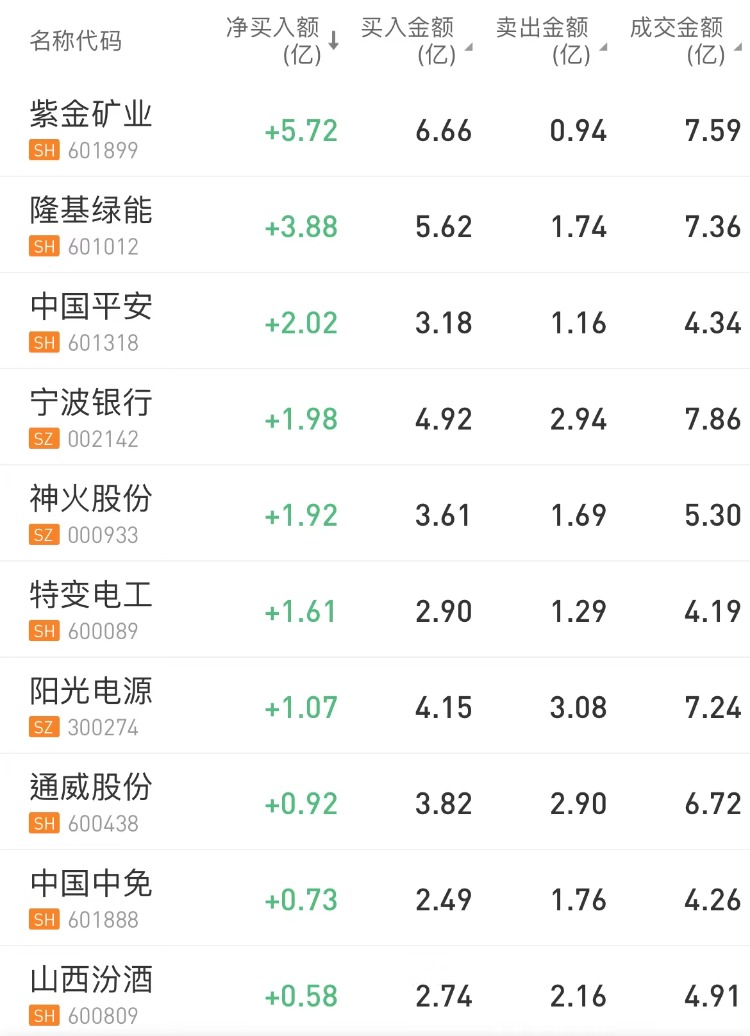 北上资金今日净买入紫金矿业 $601899.SH 5.72亿元,为今日买入之最;净买入隆基绿能 $601012.SH 3.88亿元。