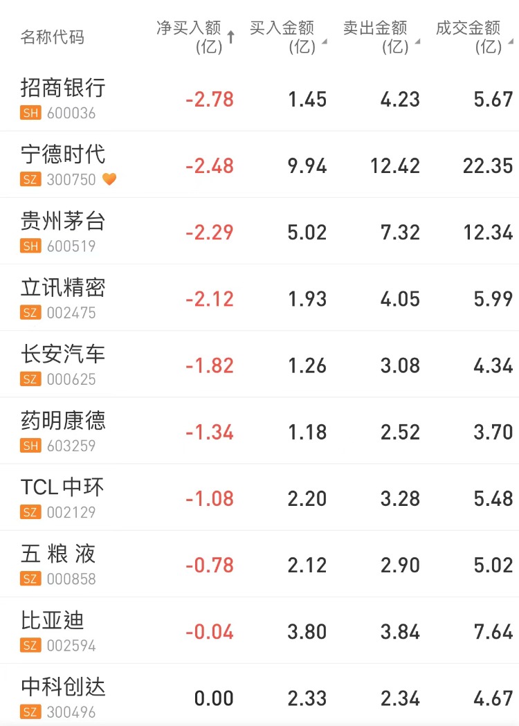 今日北上资金净卖出招商银行 $600036.SH 2.78亿元,宁德时代 $300750.SZ 遭净卖出2.48亿元。