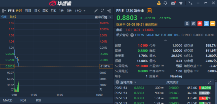特斯拉 $TSLA 涨近1%。法拉第未来 $FFIE 跌超11%,报0.8803美元。小鹏汽车 $XPEV 跌超4%,理想汽车 $LI 跌超2%,福特汽车 $F 跌超1%。