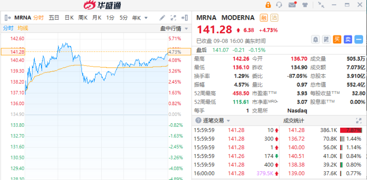 受对未来疫苗市场的上述最新预测提振,周四莫德纳股价上涨了4.73%,尽管年内以来该公司股价的跌幅仍有逾40%。而另一家疫苗厂商辉瑞股价则在周四上涨了2.06%。