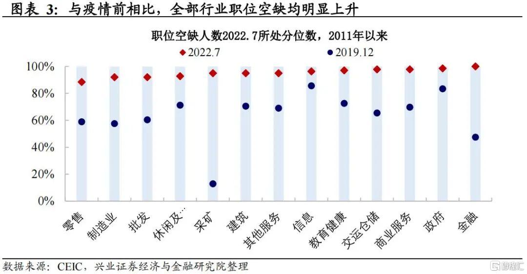 一方面,劳动力供给部分返回叠加需求下降,职位空缺或将下行;