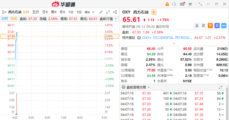 西方石油(OXY)盘前上涨2.58%,上周五盘后公布的最新文件显示,巴菲特再出手增持,伯克希尔哈撒韦对西方石油公司的持股比例增加到26.8%。