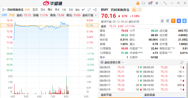 施贵宝 $BMY 盘前涨超7%,旗下新型银屑病治疗药物获FDA批准