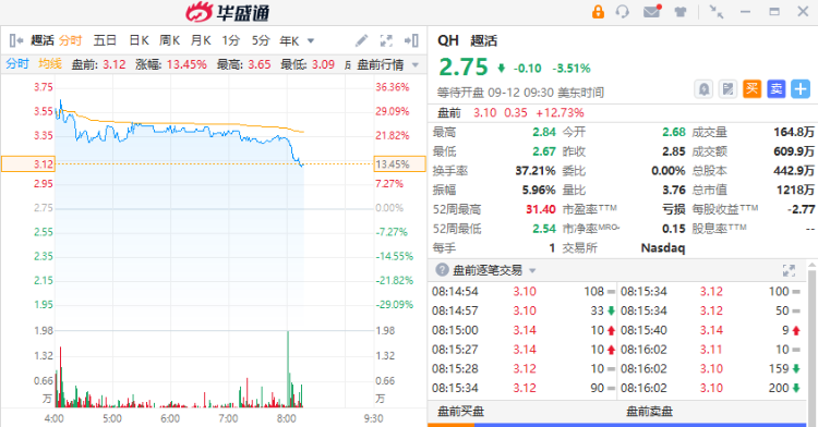 趣活 $QH 盘前一度大涨超20%,此前公布2021年全年业绩,总营收增长56%