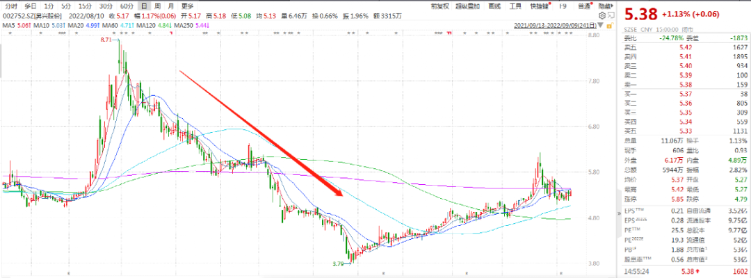 同时,公司股价在去年11月底达到高位后,便开始一路下跌,今年4月底市场回暖以来虽有回调,但此前惊人的涨势不再。截至9月9日收盘,?兴股份每股报5.38元,9月以来涨幅2.09%,公司最新市值53亿元。