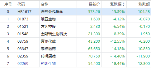 A股方面,凯莱英跌停,药明康德跌停,九洲药业逼近跌停,康龙化成跌超12%。