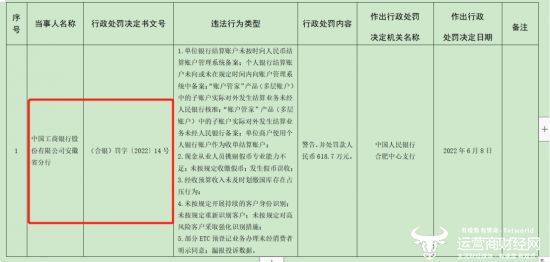 然而,工行安徽省分行也有做的不到位的地方,6月8日,该行因五项问题被中国人民银行合肥中心支行警告并罚款618.7万元。