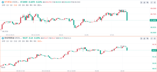 美、布油短线走低超1美元,抹去日内全部涨幅。