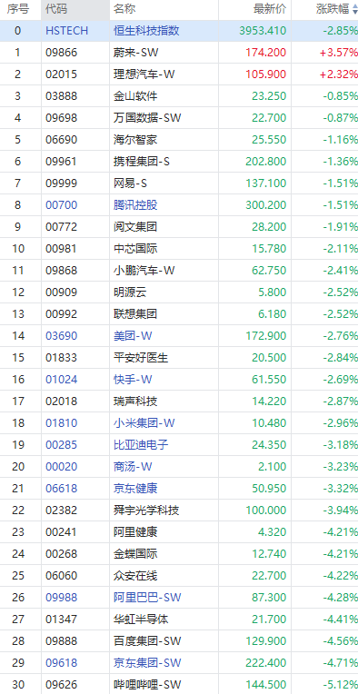 隔夜美股大跌,回港中概股今日跟跌,阿里跌超4%,京东跌近5%,哔哩哔哩跌5.12%;