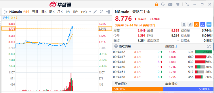 天然气期货 $NGmain 涨5.94%。