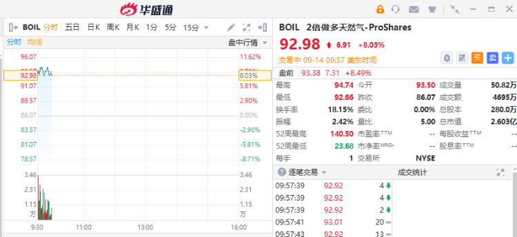 2倍做多天然气-ProShares、2倍做多标普原油与天然气探勘与开采产业ETF-Direxion涨超8%。