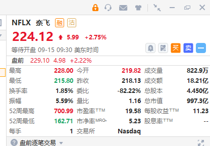 奈飞盘前涨2.22%,奈飞在向广告主提供的文件中预期,公司即将推出的低价版订阅服务将在2023年三季度时达到4000万订阅的里程碑。