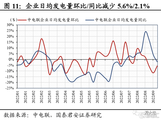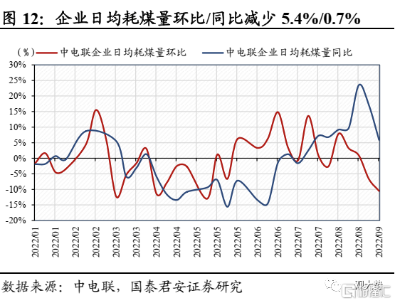 发电:制冷负荷继续下降,发电量环比回落。上周全国气温继续下降,制冷负荷延续下滑,煤电机组发电量和日耗进入下行通道。上周纳入统计的燃煤发电企业日均发电量周环比下滑5.6%,同比下滑2.1%;纳入统计的燃煤发电企业日均耗煤量周环比下滑5.4%,同比下滑0.7%。