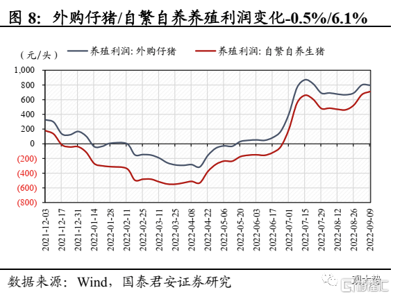 下游消费:猪价延续上涨,乘用车销量环比大幅下滑。22省市生猪平均价周环比上涨0.7%,涨势趋缓主因养殖户出栏加速叠加政府抛储影响市场情绪,8月能繁母猪存栏量环比上升1.63%,供给增速整体可控,需求旺季临近仍将对猪价提供支撑;乘用车零售/批发销量环比8月同期变化-11%/0%,零售销量大幅下滑主因疫情多地爆发影响消费者购车需求,以及中秋节假期致使销售数据偏低