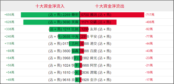 好仓(认购证及牛证)方面,周四汇丰、比迪相关好仓单日分别录得约233万、213万港元资金净流入,网易、赣锋等相关好仓单日亦录得少量资金净流入;相反,药明相关好仓单日录得约578万港元资金净流出,京东、腾讯等相关好仓单日亦见少量资金净流出。