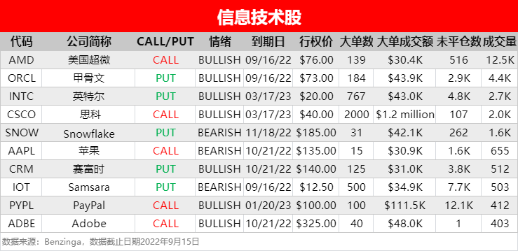 重点动态:蔚来 $NIO 出现9月23日到期、行权价格为21美元的看跌期权链异动;京东出现9月30日到期、行权价格为59美元的看涨期权链异动。