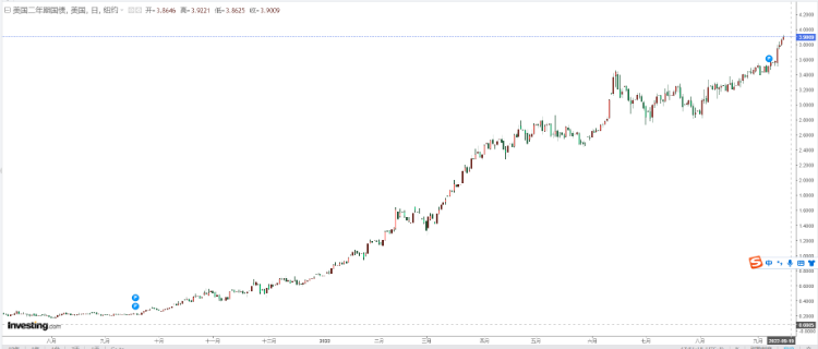 2、2年期美债收益率续创15年高位,激进加息恐慌持续笼罩华尔街