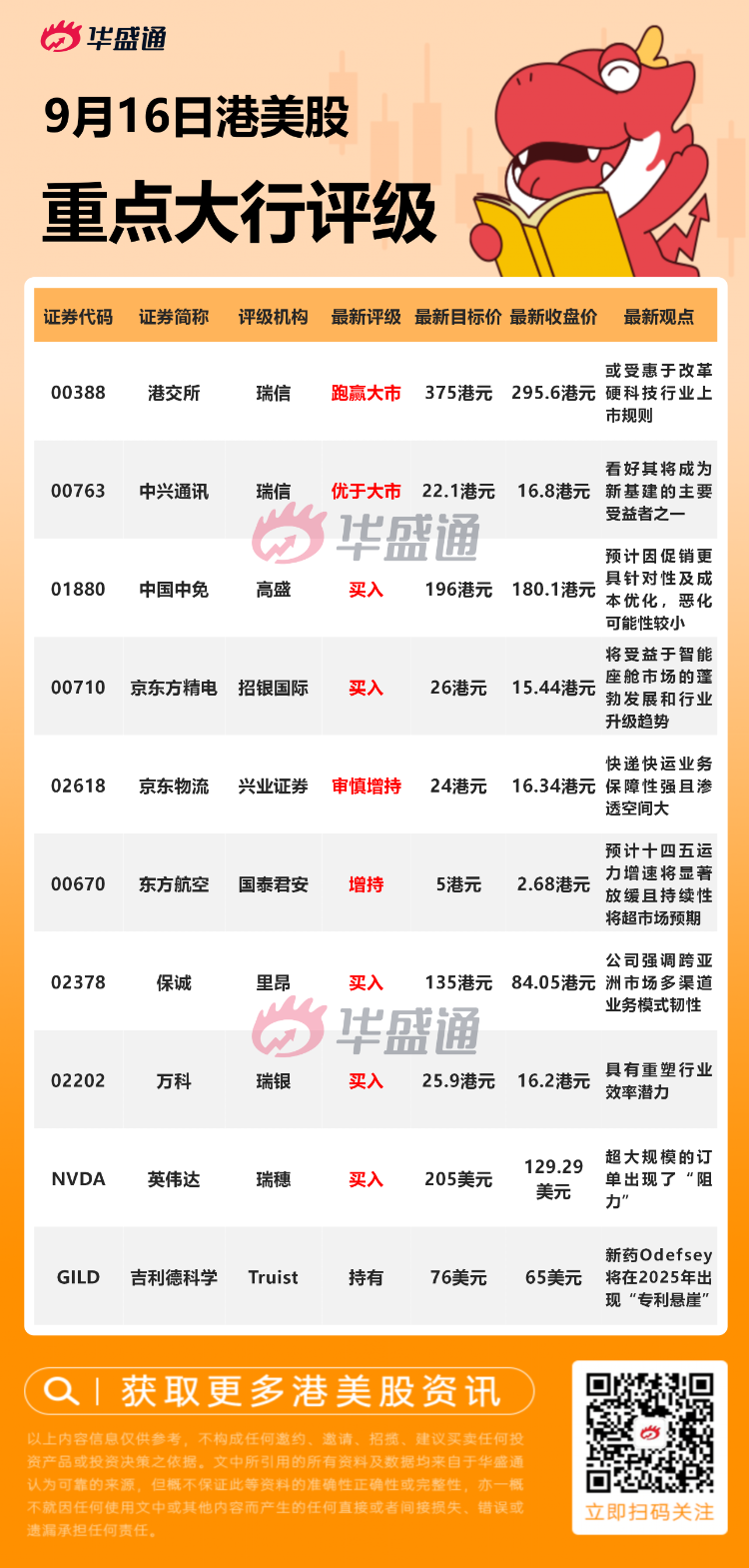 瑞信:维持港交所 $00388.HK 【跑赢大市】评级,目标价下调至375港元